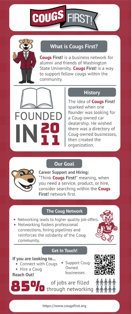 In Fall 2025, I completed COMSTRAT 480, an advanced capstone‑style course focused on integrated strategic communication, brand strategy, and applied client work. Under the guidance of Erika Schlomer‑Fischer, PhD, our class partnered with CougsFirst!, a business network that encourages Washington State University alumni and friends to “think CougsFirst!” when choosing products, services, and hiring.